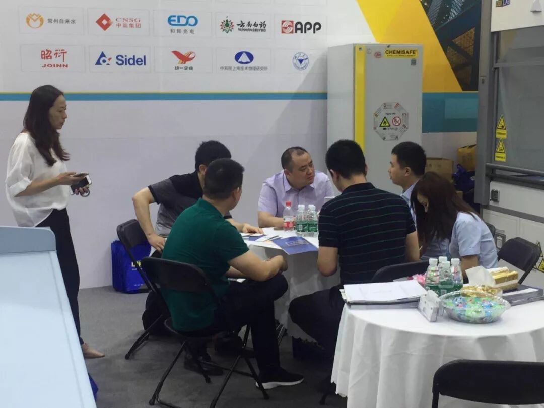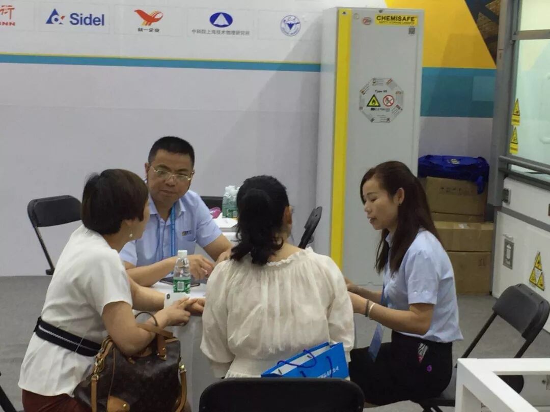 ▲ 展会开始的第二天我们的工作人员元气满满的开始新的一天的工作,随着参展商陆陆续续到来,工作人员认真专业的给参展商讲解产品~