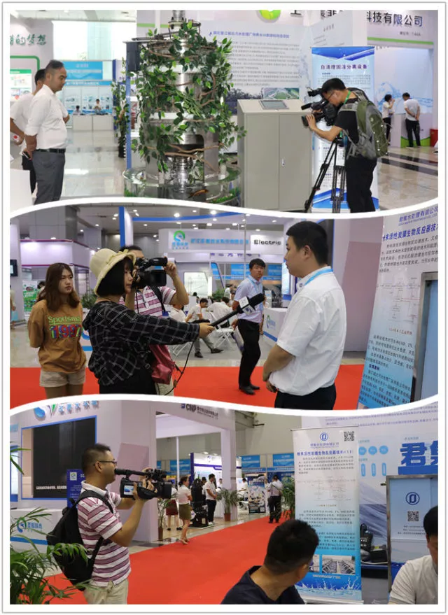 其中自清理固液分离设备成为君集的明星产品,该设备可将粒径200-800目的固体通过滤布和液体分离,实现在线清洗,过滤后的清水达到了可以养活物的标准。展览的水池里游动着的金鱼吸引了众多参展人士前来咨询参观,同时引来了荆楚大视野、湖北新闻等媒体栏目的采访拍摄。
