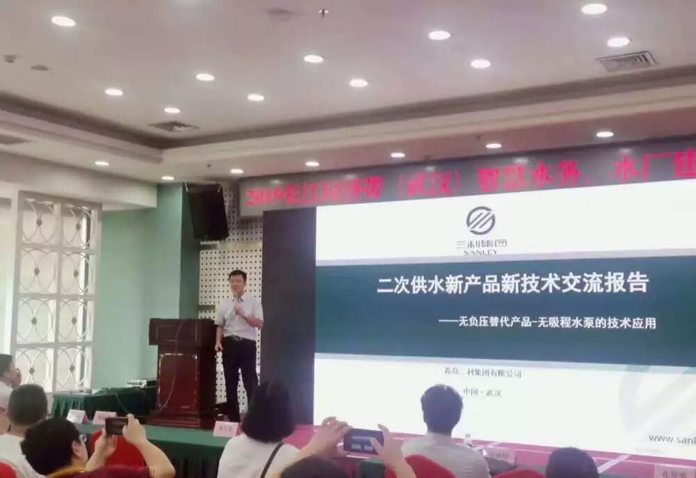 会场内,青岛三利集团湖北分公司总经理王兆超就“二次供水新产品、新技术”进行技术交流和报告学习。由三利公司结合27年供水设备生产研发经验,自主研发生产具有独特技术的“无吸程智能变速泵”问世,并且迅速在市场铺开,赢得全国各地各个客户的一致好评。其体积小,占地少,不用控制柜,不用PLC,不用低压电器,取消稳流补偿器,取消真空抑制器,全自动运行,无人值守等各项先进技术优势。环视会场,业界同行还在做无负压、水箱。而三利集团,已经悄然掀起了“第二次供水革命”,取代无负压产品,采用更高效先进集成的无吸程智能变频水泵来确保供水保障!